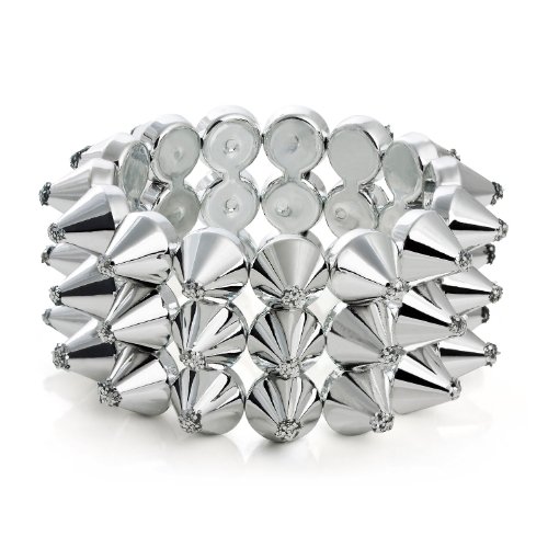 Here are some of the great features of Charmed by Stacy 3 Row Spike Silver Bracelet (Stretch)